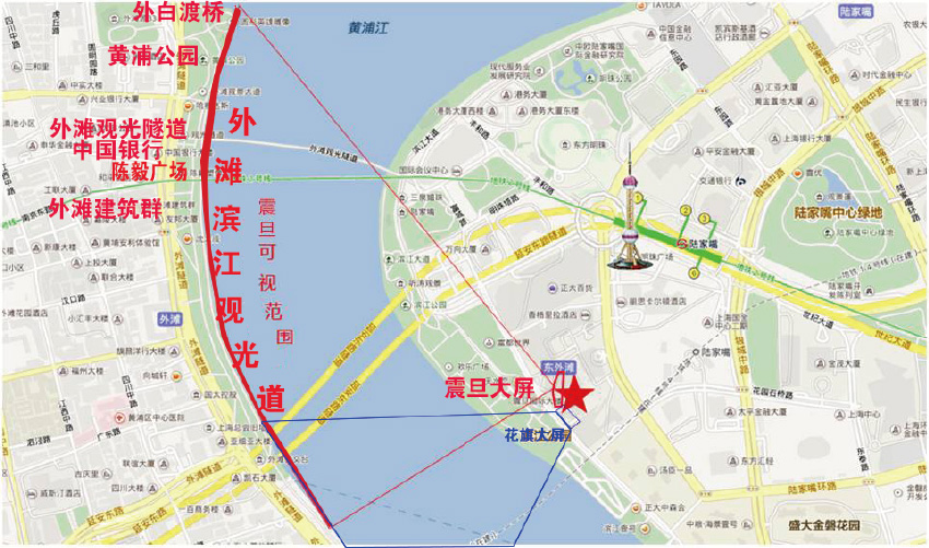 “震旦大屏幕”震撼之处是在于它的地理位置非常突出