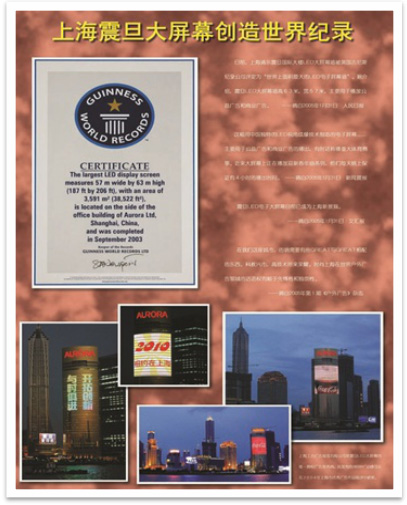 于2004年10月获得吉尼斯世界纪录最大屏幕。