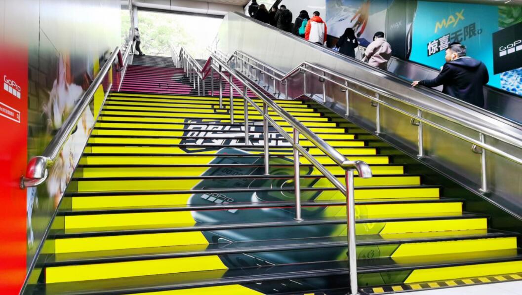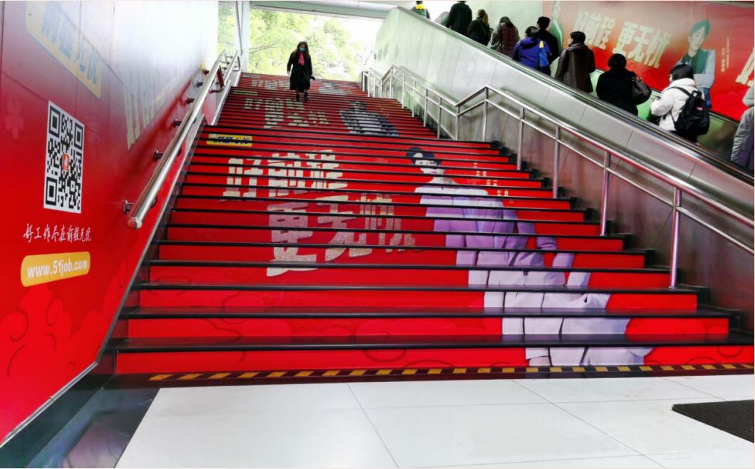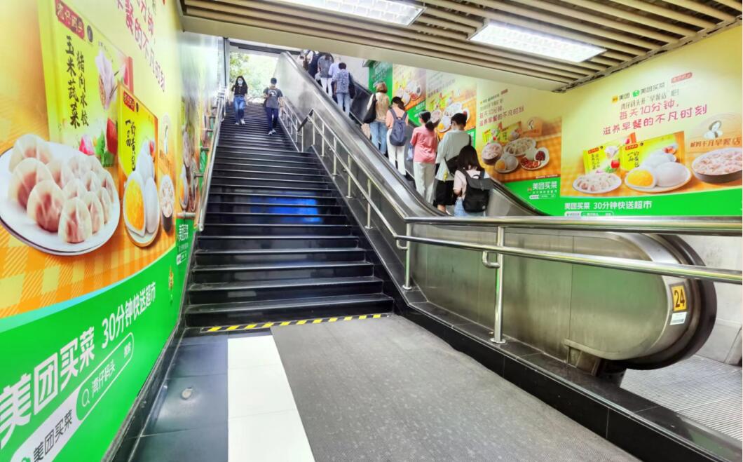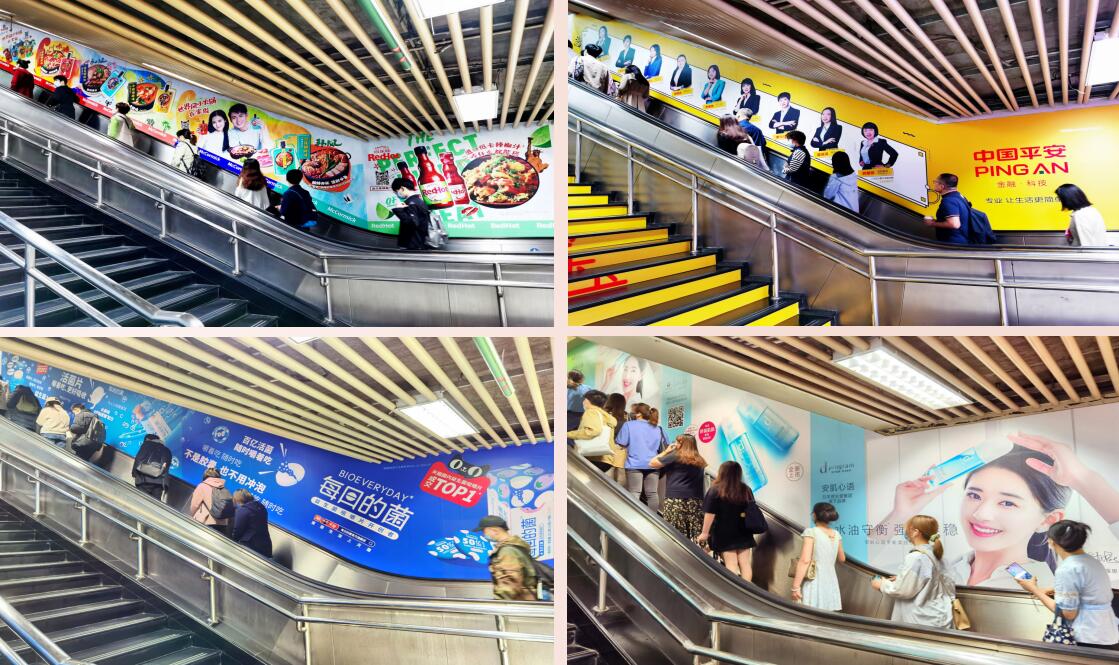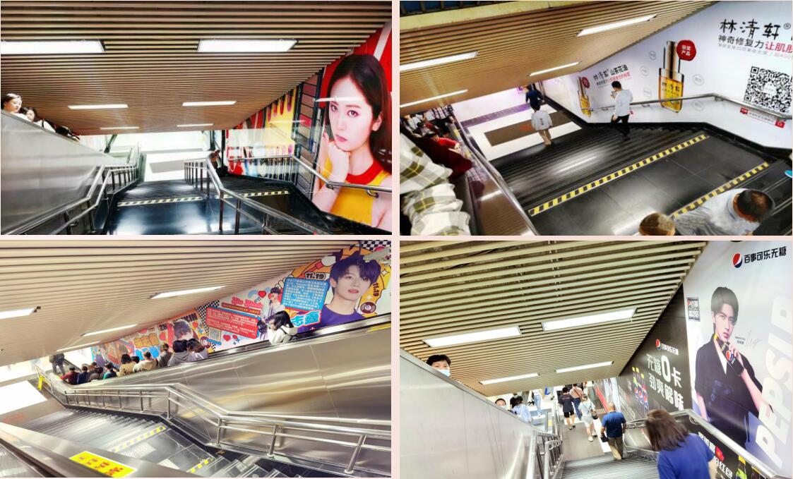 1、人民广场8/9/10/11号口楼梯上行左侧墙贴4块墙贴约120平左右