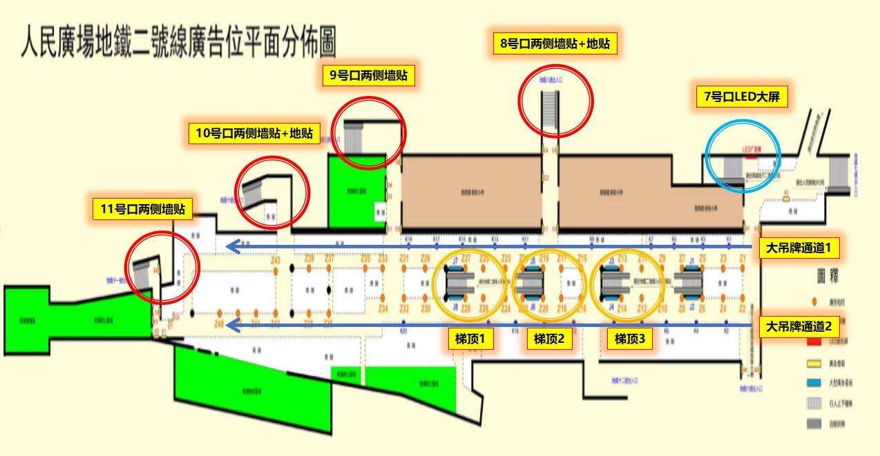 人民广场地铁站6号口至11号口至大吊牌2通道(示例图)