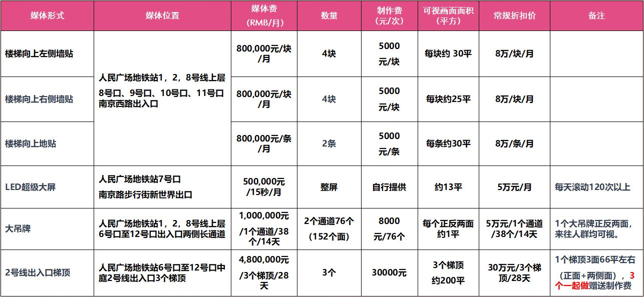 上海人民广场地铁1/2/8号线媒体资源投放方案&媒体刊例