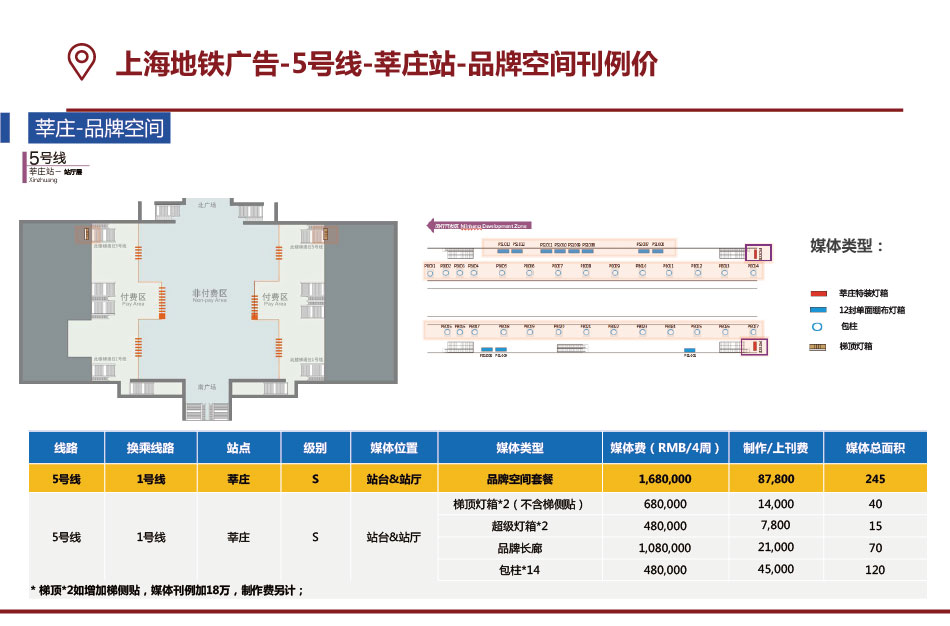 上海地铁广告-5号线莘庄站-品牌空间刊例价