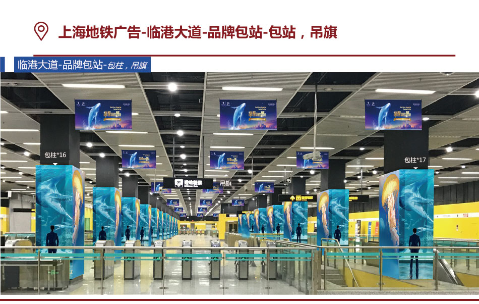 上海地铁广告-临港大道-品牌包站-包柱,吊旗