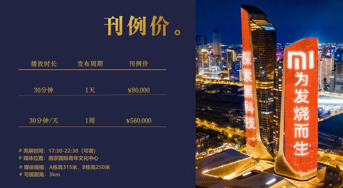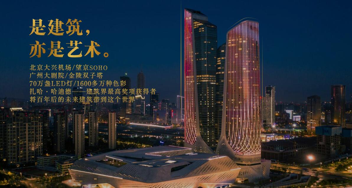 南京户外楼体灯光秀金陵双子塔 南京河西CBD 青奥体育中心大屏