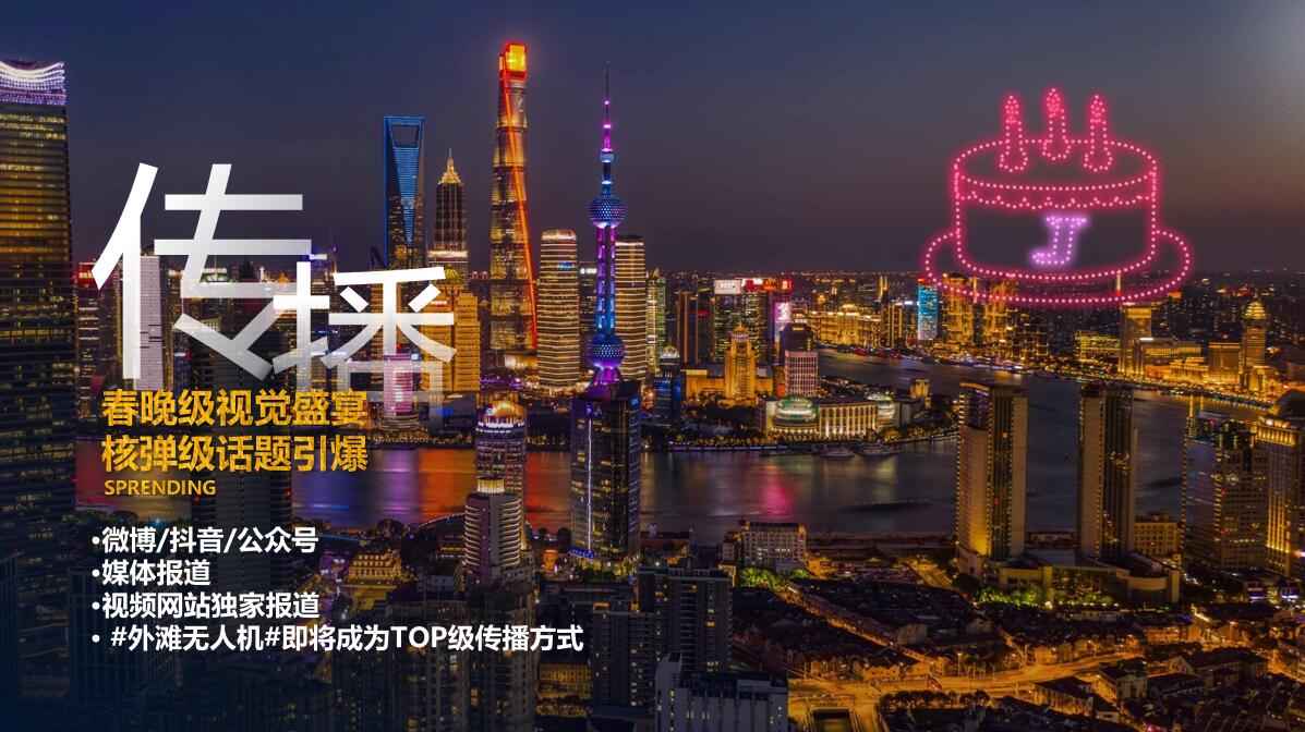这里是中国上海——百年外滩,寸土寸金! 这一方金土不但涵盖世界上所有国有银行 , 还有顶级酒店——半岛酒店、W酒店、华尔道夫酒店、奥特曼酒店、罗斯福会所、百达翡丽源邸。日均人流量达 200 万,为全国第一。这里不仅仅是前沿奢华品牌的必争之地,更是官方数次认可的门户之地,全球新品首发地。无人机灯光秀表演在这里扬帆起航,带来一场场炫酷夺目的视觉体验!传播春晚级视觉盛宴!核弹级话题引爆!二次宣传不二之选!品牌宣传、粉丝应援、求婚表白...无人机编队表演、无人机灯光秀、无人机广告宣传...在这里都可以实现。我们将协助您,告诉世界,TA在这里!