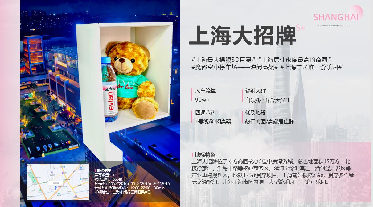 上海大招牌位于南方商圈核心C位中庚漫游城,总占地面积15万方,北接徐家汇、淮海中路等核心商务区,延伸至徐汇滨江、漕河泾开发区等产业重点规划区。