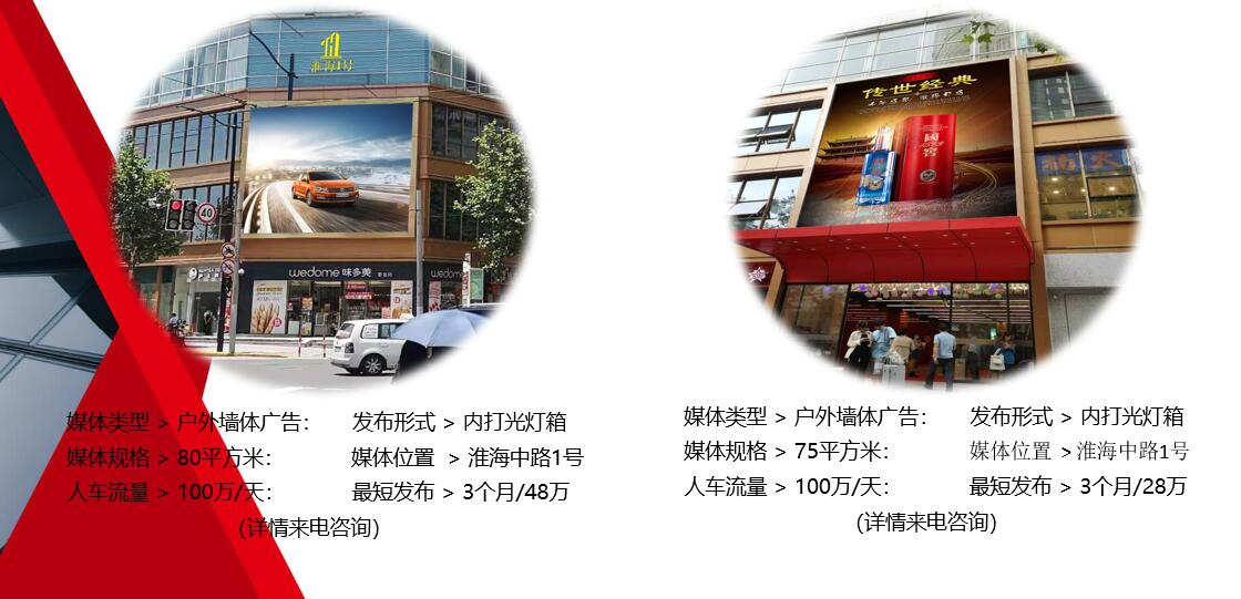 • 交通干道:位于淮海中路近西藏南路口,交通常年拥堵,媒体停留时间长。毗邻地铁1号线、 8号线、10号