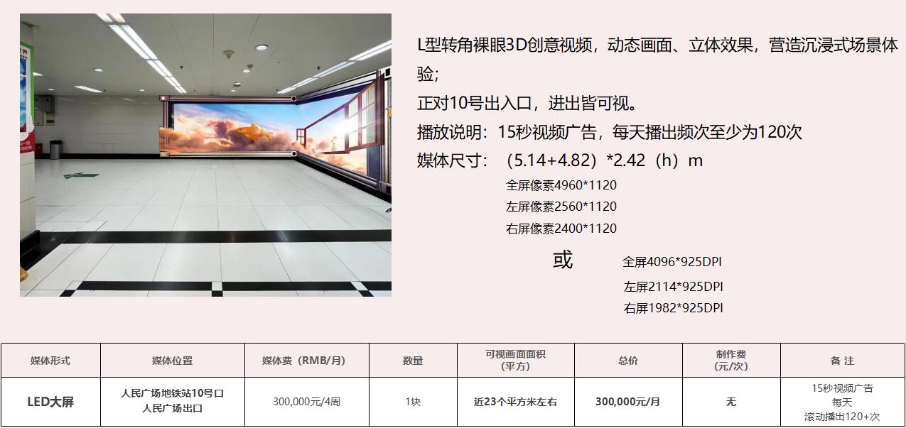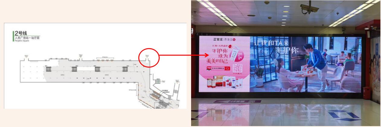 LED大屏位于: 地铁人民广场站7号出口通道处,核心商务区的核心位置。