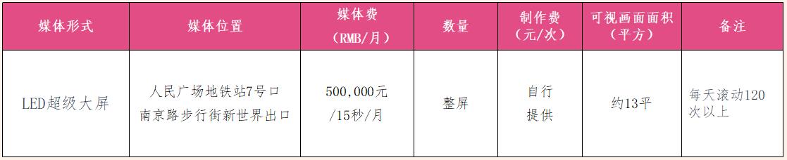 人民广场地铁站7号口南京路步行街新世界出入口处高清LED超级大屏(示意图)